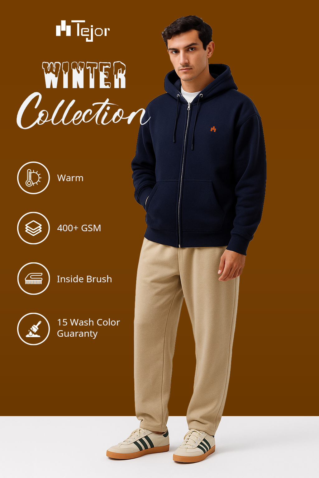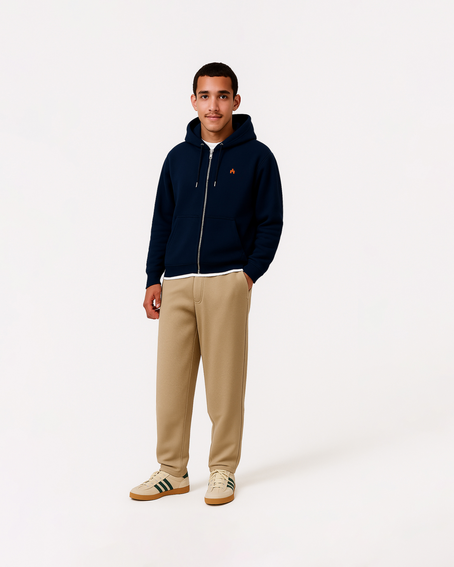 Introducing our zip-through hoodie – a staple piece designed to keep you comfortable whilst keeping things casual. Made from a blend of cotton that’s soft, it’s brushed inside to ensure maximum comfort. The zip-through feature allows for easy layering, and the added hood makes it essential for winter days. With two side pockets for that added touch, this hoodie pairs perfectly with shirts, t-shirts, joggers or jeans for a relaxed day outfit.